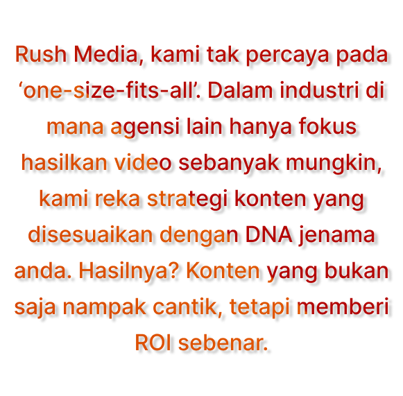 Agensi lain kejar kualiti. Rush Media cipta konten yang dibina khas untuk membawa impak kepada bisnes anda!
